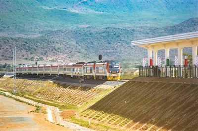 2019年10月16日,肯尼亞總統(tǒng)肯雅塔乘坐的列車駛?cè)雰?nèi)羅畢—馬拉巴標(biāo)軌鐵路(內(nèi)馬鐵路)一期工程麥馬修火車站。由中國企業(yè)承建的肯尼亞內(nèi)羅畢—馬拉巴標(biāo)軌鐵路(內(nèi)馬鐵路)一期工程當(dāng)日正式建成通車。新華社記者 李 琰攝