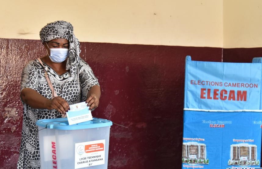 12月6日,在喀麥隆雅溫得,一名選舉人參加大區(qū)議會選舉投票。