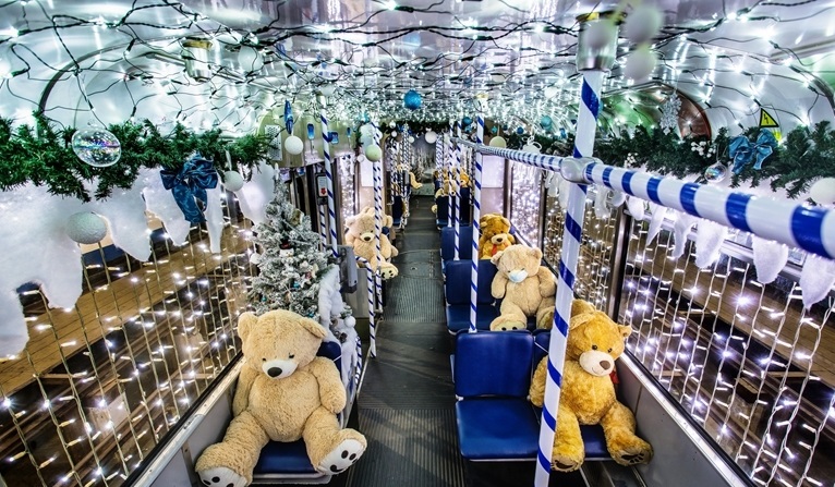 當?shù)貢r間12月9日,克羅地亞奧西耶克,為了迎接圣誕節(jié),當?shù)仉娷噧?nèi)外都被裝飾一新,并在車上的座位擺放泰迪熊玩偶。(圖片來源:東方IC)