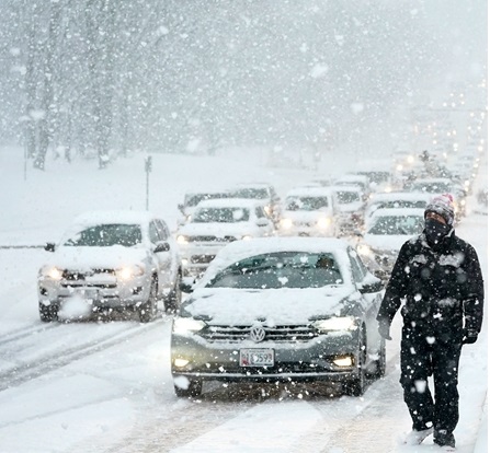 當(dāng)?shù)貢r(shí)間12月16日,美國(guó)馬里蘭州,當(dāng)?shù)赜瓉?lái)大雪,導(dǎo)致交通堵塞。(圖片來(lái)源:東方IC)
