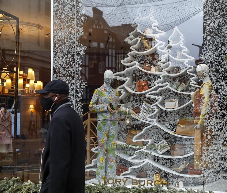 12月21日,一名戴口罩的男子從英國倫敦一家商鋪櫥窗里戴口罩的模特前走過。 圣誕節(jié)臨近,英國部分地區(qū)新冠病毒傳播速度加快,疫情令人擔(dān)憂。英國政府正在調(diào)查這一狀況是否與一種變異的新冠病毒有關(guān),并將首都倫敦、英格蘭東南部和東部部分地區(qū)的新冠疫情防控級別從第三級提升至新增加的第四級。 新華社記者 韓巖 攝