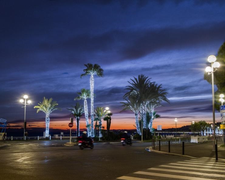 這是12月24日在法國(guó)尼斯拍攝的圣誕燈飾。新華社發(fā)(塞爾日·阿烏齊攝)