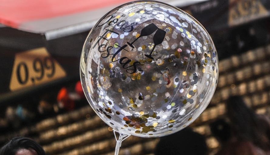 12月28日,在巴西圣保羅的一家商店,店員手持寫(xiě)有“節(jié)日快樂(lè)”字樣的氣球。