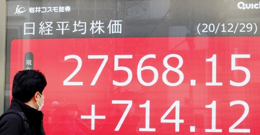12月29日,行人經(jīng)過(guò)日本東京一處電子股指顯示屏。