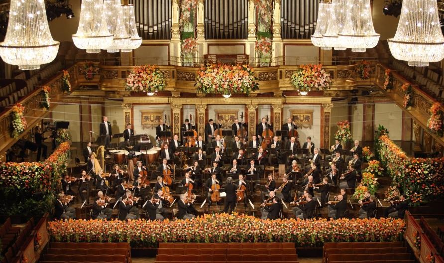 1月1日,維也納愛(ài)樂(lè)樂(lè)團(tuán)在奧地利維也納金色大廳新年音樂(lè)會(huì)上演奏。新華社發(fā)(迪特.納格攝)