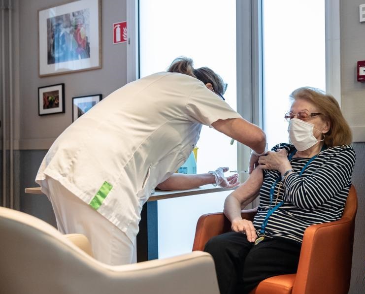 1月7日,一名女子在法國(guó)巴黎一家養(yǎng)老院接種新冠疫苗。