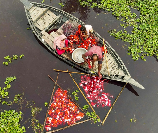 人民網(wǎng)訊 當(dāng)?shù)貢r(shí)間2021年1月10日,孟加拉國Araihazar,實(shí)拍印染廠織布晾曬過程。