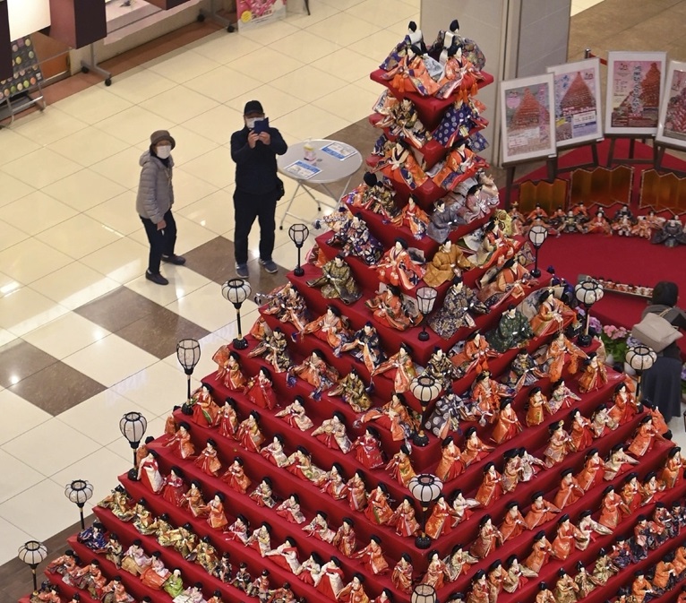 當(dāng)?shù)貢r(shí)間2月19日,日本埼玉縣鴻巢市,當(dāng)?shù)匾患屹徫镏行恼钩雠畠汗?jié)人偶“金字塔”,7米高的分層陳列臺(tái)上展出約1800個(gè)娃娃。(圖片來源:東方IC)