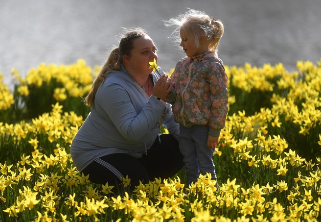 當(dāng)?shù)貢r(shí)間2月24日,英國(guó)倫敦,圣詹姆斯公園的水仙花盛開。(圖片來源:東方IC)