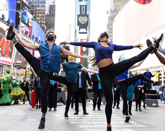人民網(wǎng)訊 當(dāng)?shù)貢r(shí)間2021年3月12日,美國(guó)紐約,百老匯劇院關(guān)閉一周年,美國(guó)戲劇界在時(shí)代廣場(chǎng)組織了一場(chǎng)名為“我們會(huì)回來(lái)的”的快閃演出。