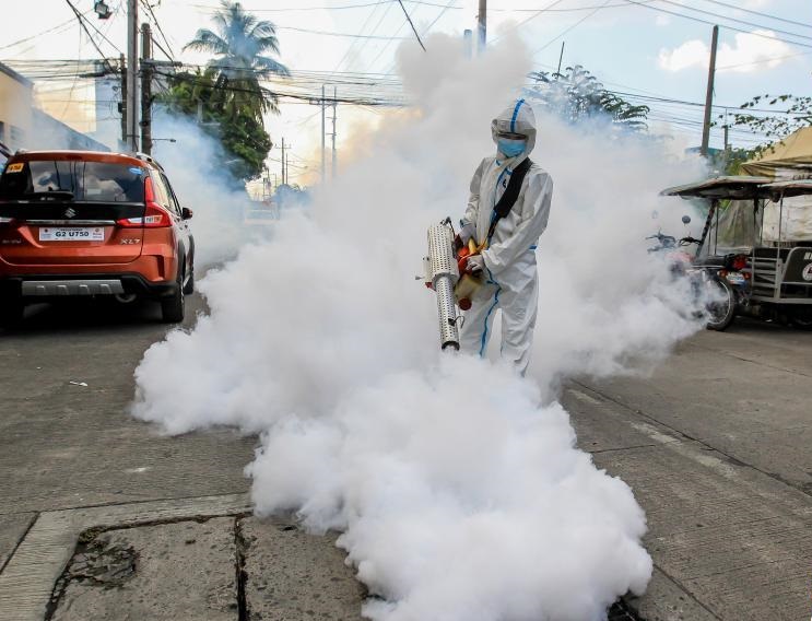 3月17日,工作人員在菲律賓馬尼拉街頭進(jìn)行消殺作業(yè)。