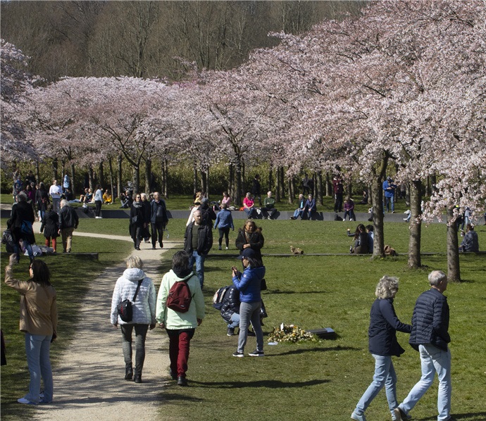 人民網(wǎng)訊 當?shù)貢r間3月29日,荷蘭阿姆斯特丹郊外的阿莫斯特爾芬,荷蘭櫻花綻放,人們外出踏春。