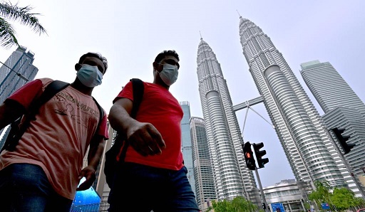 5月19日,在馬來(lái)西亞吉隆坡,行人戴著口罩走在路上。新華社發(fā)(張紋綜攝)