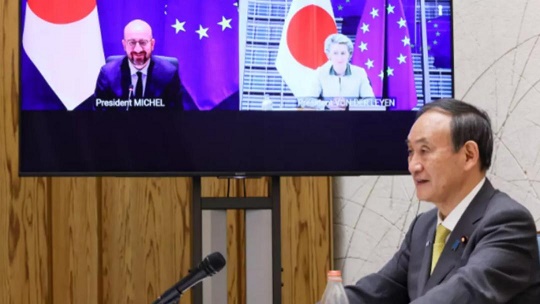 第27屆歐盟-日本峰會27日以線上方式舉行,歐洲理事會主席米歇爾、歐盟委員會主席馮德萊恩和日本首相菅義偉與會。會后發(fā)表的聯(lián)合聲明說,雙方支持今年夏天以“安全和有保障的方式”舉辦東京奧運會和殘奧會,這是“全球團結打敗新冠疫情”的一個象征。