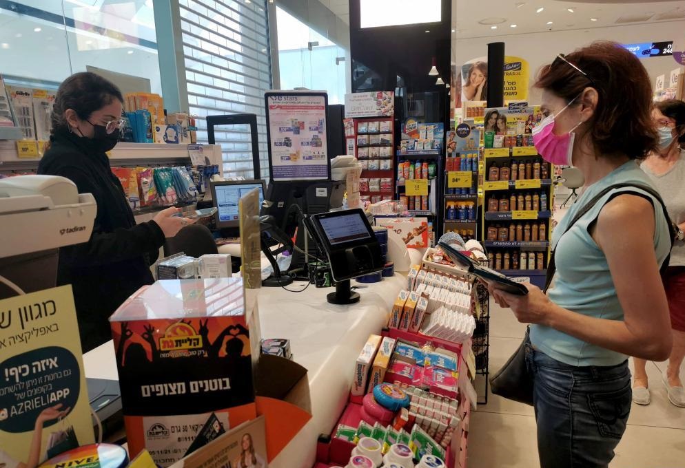 6月25日,一名女子戴著口罩在以色列中部城市莫迪因一座購物中心內(nèi)購物。