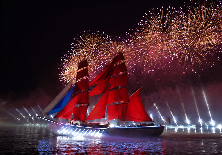 人民網(wǎng)訊 當(dāng)?shù)貢r間6月26日,俄羅斯圣彼得堡舉行紅帆節(jié)慶祝學(xué)生畢業(yè)。