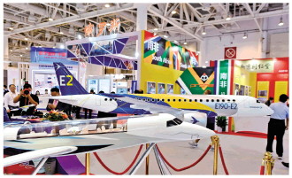 9月8日,2021金磚國家新工業(yè)革命展在廈門開幕。圖為在展覽上拍攝的參展飛機(jī)模型。 新華社發(fā)