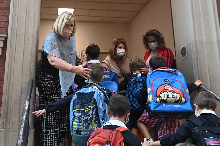 9月13日,學(xué)生在意大利博洛尼亞進(jìn)入學(xué)校。9月13日后,意大利所有大區(qū)學(xué)校將陸續(xù)開學(xué)。根據(jù)意教育部公布的全國(guó)學(xué)校防疫措施,教職員工進(jìn)入校園必須持有“綠碼”。