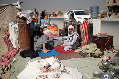10月13日,商販在阿富汗喀布爾的二手市場上等待顧客。