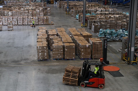11月8日,工作人員在比利時列日省格拉斯-奧洛涅的菜鳥列日數(shù)字物流中樞工作。