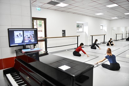 意大利羅馬國家舞蹈學(xué)院于近日開啟新學(xué)年,課程通過線上線下相結(jié)合的方式開展。學(xué)生參加線下課時必須遵守佩戴口罩、保持社交距離等防疫規(guī)定,而因疫情不能到場的教師和學(xué)生可通過網(wǎng)絡(luò)形式參與。