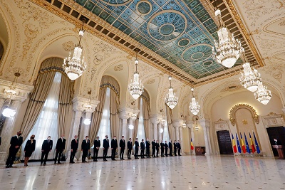 11月25日,羅馬尼亞新政府成員在首都布加勒斯特出席宣誓就職儀式。