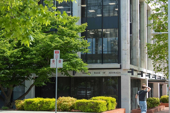 12月1日,一名女士走過澳大利亞首都堪培拉的澳大利亞儲(chǔ)備銀行辦公樓。