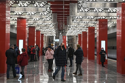 12月7日,由中國鐵建承建的莫斯科地鐵第三換乘環(huán)線西南段投入運行。俄羅斯總統(tǒng)普京以視頻連線形式出席通車儀式并宣布正式開通。2017年1月,中國鐵建中標莫斯科地鐵第三換乘環(huán)線西南段項目,標段全長5.4公里,包含阿明耶沃站、米丘林大街站、韋爾納茨基大街站3個車站和9條盾構(gòu)隧道建設(shè)任務(wù),這也是俄羅斯首次在地鐵施工領(lǐng)域引進中國企業(yè)。走進米丘林大街地鐵站,紅色立柱、團壽紋、祥云等中國元素隨處可見。這里已經(jīng)成為中俄友誼的新地標,展現(xiàn)出“一帶一路”上的跨文化盛景。