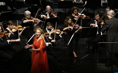 2月6日,在奧地利薩爾茨堡,奧地利女高音歌唱家維多利亞·瓦爾加(前左)在“中華風(fēng)韻”新春音樂會上表演。新華社發(fā)(佟薇薇攝)