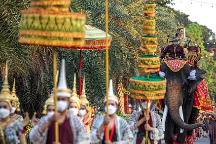 每年4月13日至15日是泰國(guó)傳統(tǒng)新年宋干節(jié),人們會(huì)以互相潑水的方式表達(dá)迎新祝福。受新冠疫情影響,泰國(guó)已連續(xù)第三年取消街頭潑水慶祝活動(dòng),泰國(guó)旅游局在大城府改為舉辦街頭巡游活動(dòng)慶祝宋干節(jié)。