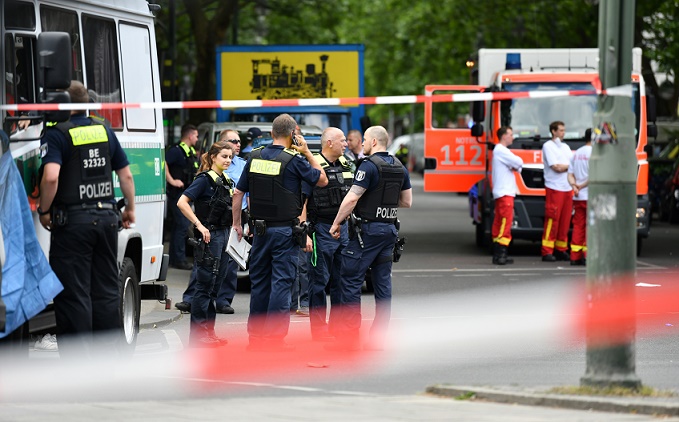 6月8日,警察在德國(guó)柏林車(chē)輛沖入人群事件現(xiàn)場(chǎng)工作。