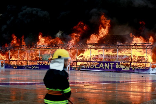 這是6月26日在緬甸仰光拍攝的毒品銷毀現(xiàn)場。