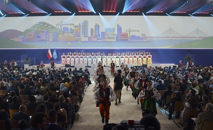 6月27日,在波蘭卡托維茲,演員在第11屆世界城市論壇開(kāi)幕式上表演。
