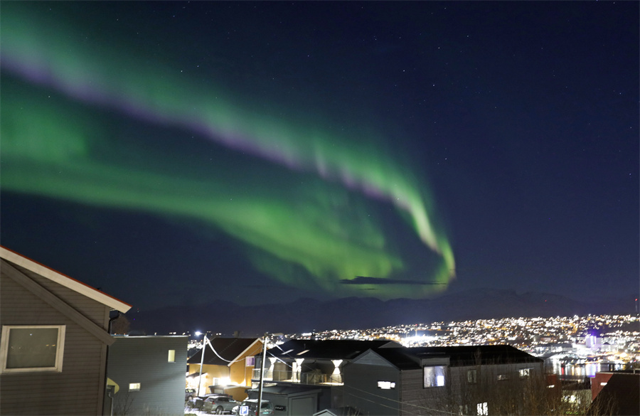 挪威特羅姆瑟夜空現(xiàn)唯美北極光