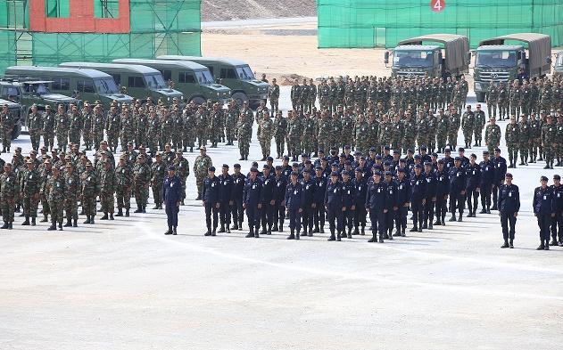 這是5日拍攝的參加聯(lián)演閉幕式的部隊。新華社發(fā)(李萊攝)