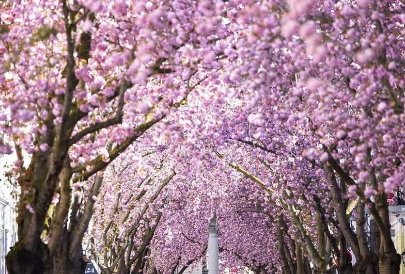 當?shù)貢r間2023年4月14日,德國波恩,著名的櫻花大道赫爾街的櫻花盛放。每年春天,這條街道上盛開的粉櫻都會吸引成千上萬的游客前來觀賞。