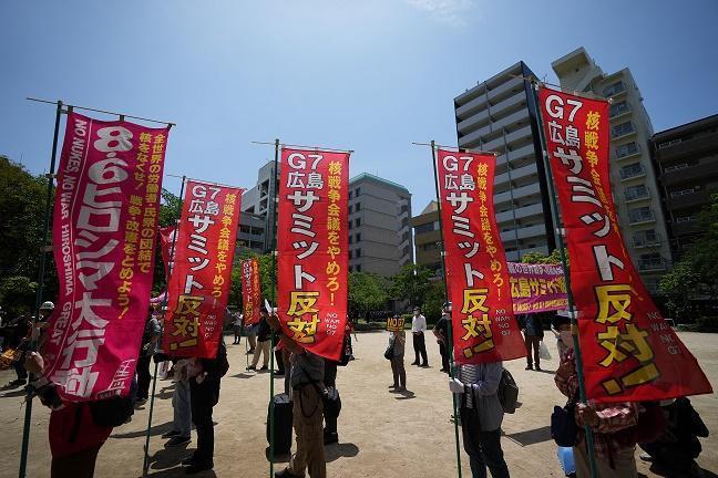 5月21日,民眾聚集在日本廣島袋町公園,抗議七國集團峰會。新華社記者 張笑宇 攝