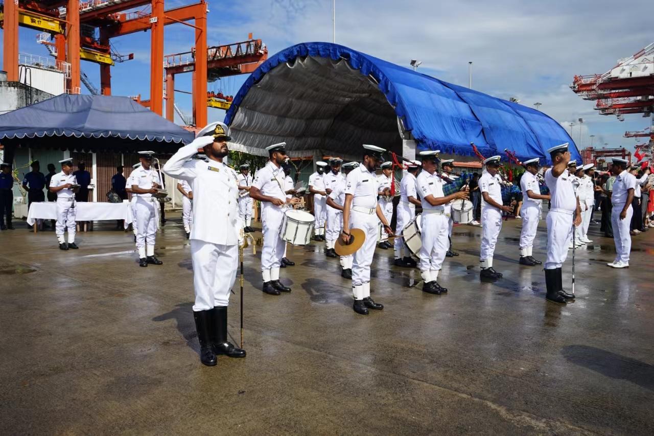 抵港當天,斯方在碼頭舉行了歡迎儀式。斯方代表,中國駐斯里蘭卡大使館工作人員,以及華人華僑和中資機構(gòu)員工代表等在碼頭迎接。