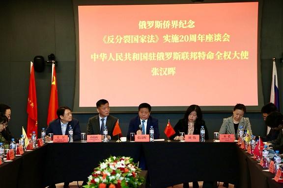 近日,俄羅斯中國和平統(tǒng)一促進會在莫斯科舉行紀念《反分裂國家法》實施20周年專題座談會。中國駐俄羅斯大使張漢暉出席并發(fā)表講話,旅俄華僑華人、中資企業(yè)、留學(xué)生代表60余人與會。