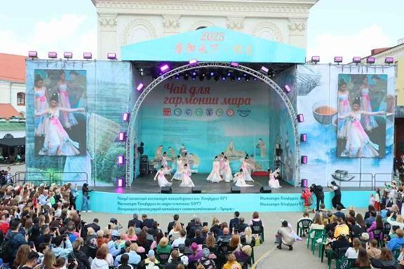 “茶和天下?雅集”活動(dòng)5月31日在白俄羅斯首都明斯克市中心的自由廣場(chǎng)舉行。中國(guó)駐白俄羅斯大使張汶川、明斯克市執(zhí)委會(huì)第一副主席拉扎列維奇、天津文化藝術(shù)代表團(tuán)團(tuán)長(zhǎng)周建軍、白文化部長(zhǎng)切爾涅茨基、經(jīng)濟(jì)部副部長(zhǎng)阿布拉緬科,以及白政府、議會(huì)、政黨、智庫、各國(guó)駐白使節(jié)等各界人士近3萬人出席活動(dòng)。
