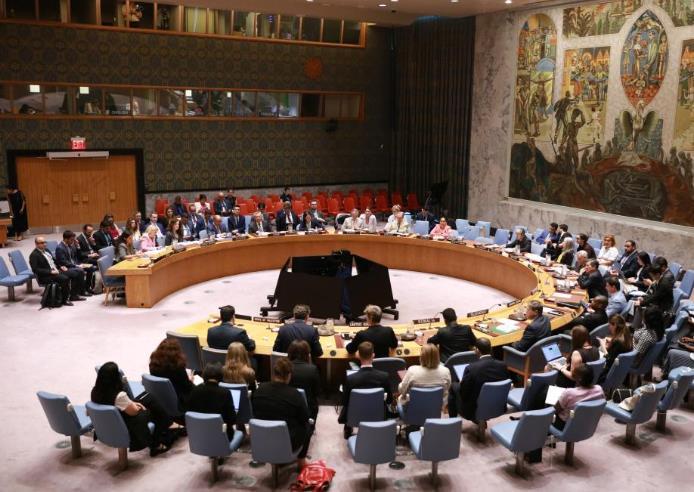這是7月16日在位于紐約的聯(lián)合國總部拍攝的安理會(huì)加沙人道局勢(shì)緊急公開會(huì)現(xiàn)場(chǎng)。新華社記者 謝鍔 攝