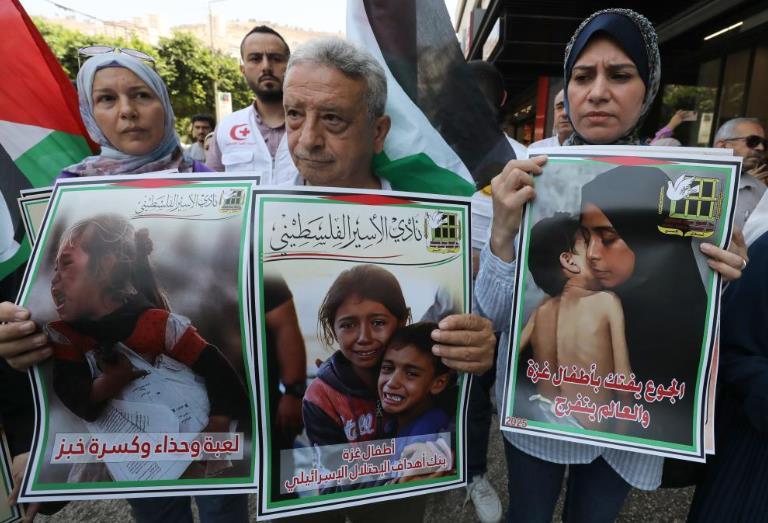 7月29日,人們?cè)诩s旦河西岸城市納布盧斯集會(huì),抗議以色列對(duì)加沙實(shí)施的饑餓政策,呼吁停火止戰(zhàn)。新華社發(fā)(尼達(dá)爾·艾仕塔耶?dāng)z)