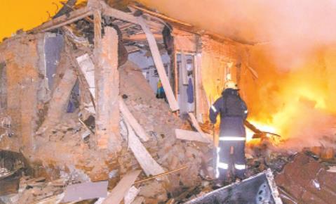 圖為當(dāng)?shù)貢r(shí)間2026年2月26日,烏克蘭哈爾科夫,一名消防員正在撲滅俄羅斯襲擊后受損房屋的火災(zāi)。 CFP供圖