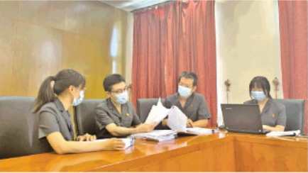 圖為陶鈞(左二)正在參與合議案件。 北京市高級人民法院供圖