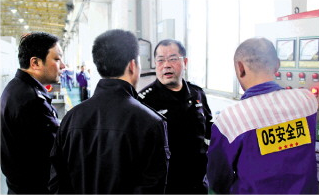 圖為周魯軍(左三)生前在生產(chǎn)現(xiàn)場(chǎng)講解安全設(shè)施檢查重點(diǎn)。 山東省聊城監(jiān)獄供圖