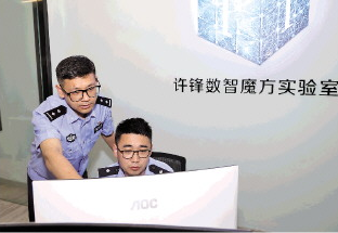 圖為許鋒(左)在“數(shù)智魔方”實(shí)驗(yàn)室工作。嘉興市公安局南湖分局供圖
