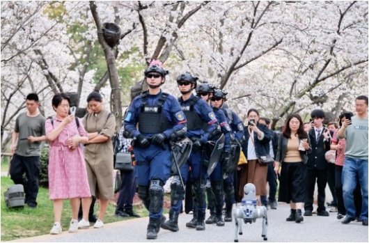 3月22日,江蘇省無錫市黿頭渚景區(qū)內(nèi),櫻花競(jìng)相綻放。櫻花樹下,游人如織,歡聲笑語不斷。長(zhǎng)春橋邊、櫻花谷入口、賞櫻閣下……執(zhí)勤警力在默默守護(hù)。每年春天,八方游客來錫,共赴櫻花之約。平均每日數(shù)萬名游客涌入5.39平方公里的景區(qū),如何守護(hù)景區(qū)和游客的安全,守住游客對(duì)無錫的美好印象,成為無錫警方的“必答題”。