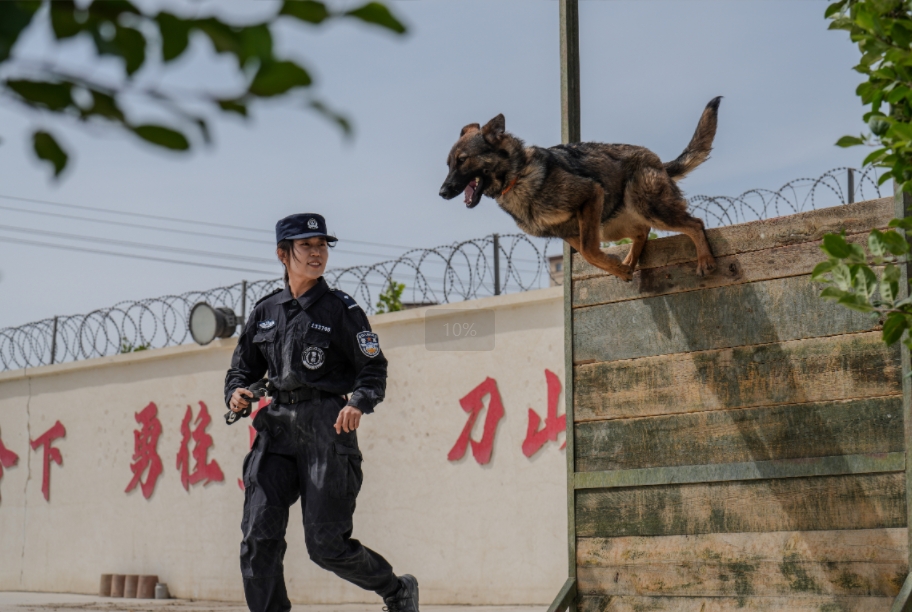 圖為訓(xùn)犬員正在對(duì)警犬開(kāi)展訓(xùn)練