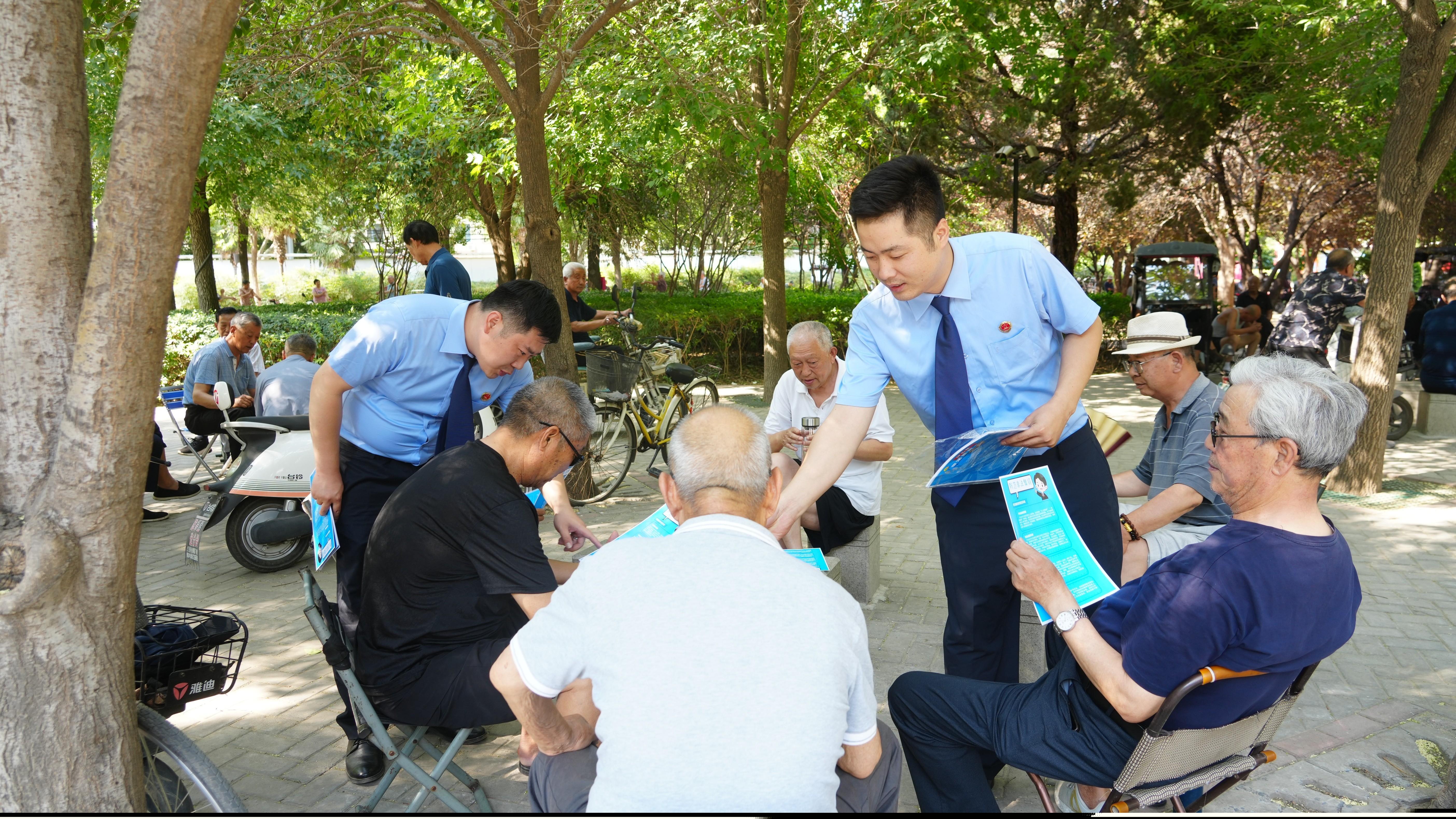 圖為7月22日,溫縣人民檢察院干警向老年人發(fā)放防范電信網(wǎng)絡(luò)詐騙宣傳資料。