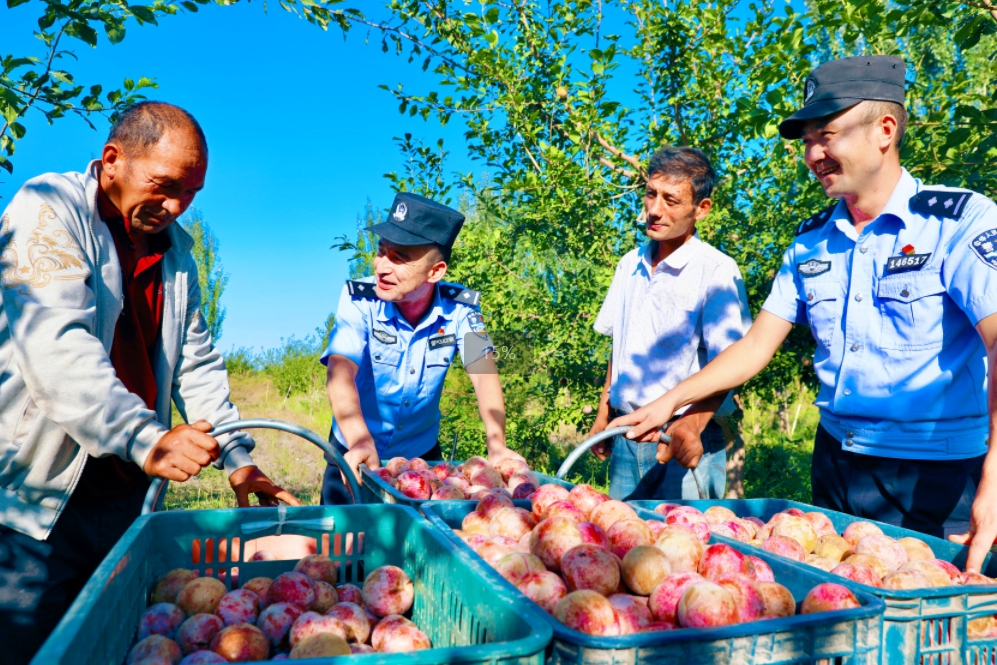 時值八月,碩果飄香,新疆溫宿縣的廣大果農(nóng)迎來水果豐收季,采摘、運輸、銷售……呈現(xiàn)出一片繁忙景象。溫宿縣公安局將警務(wù)觸角延伸至田間地頭,扎實開展巡邏防控、矛盾化解、安全宣傳、幫助采摘等服務(wù)群眾工作,守護“致富果”,助力鄉(xiāng)村振興。